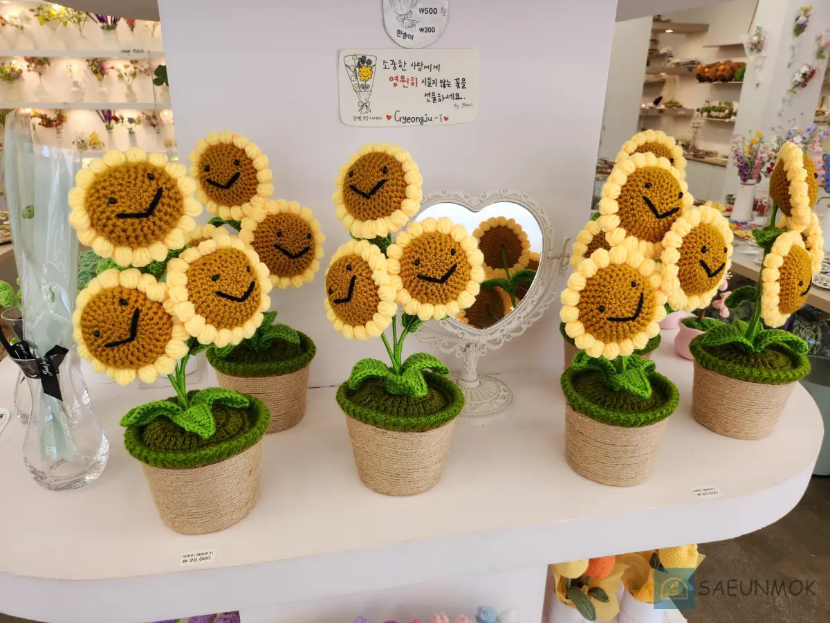 황리단길 초입에 위치하고 있어서 찾는 데는 크게 어려움이 없는 곳이에요. 메인은 뜨개로 만든 꽃인데 실제로 보면 정말 귀엽고 신기한 제품들이 많아요.ㅎㅎ