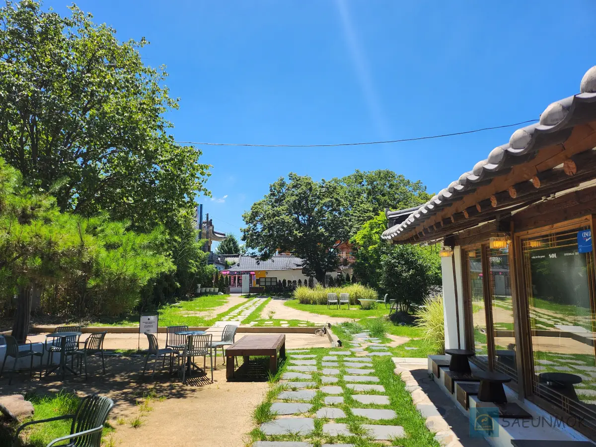 여기도 한옥 스타일로 꾸며진 카페라 사진이 잘 나오는데 제가 갔을 때 특히 날씨가 좋아서 무슨 만화에 나올 것 같은 그런 사진이 찍히더라고요.