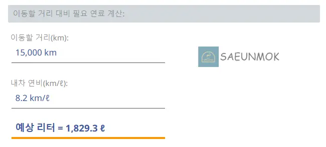 1년에 15,000km 주행 기준으로 표준 연비가 8.2km/L로 하면 대략 357만 원이 나와요.