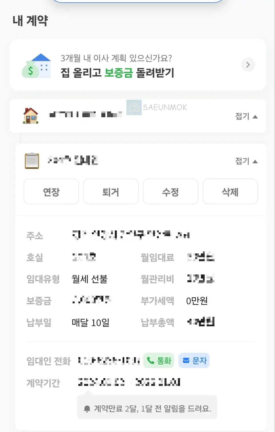 그리고 내가 거주하고 있는 임차 거주지 정보 등록 후 집주인 전화번호 등록하시면 끝납니다.