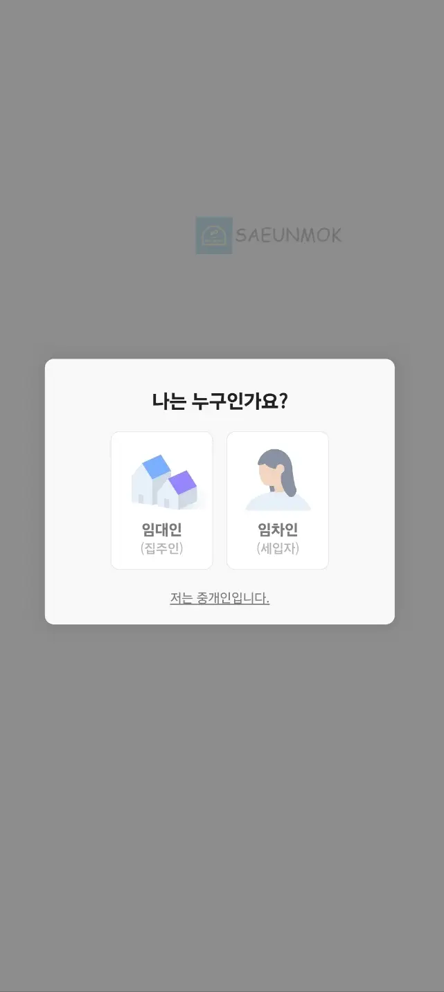 처음 계정을 만들고 임대인, 임차인, 중개인 3가지 중 선택해야 하는데 임차인으로 선택하시면 됩니다.