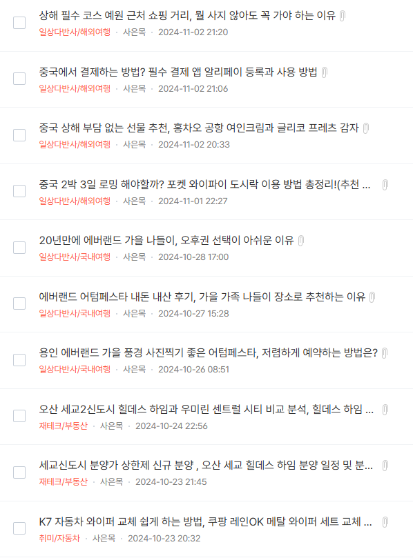 하지만 수익이 안나도 글을 매일 1개씩 쓰고, 글감을 찾으러 다니고 일상을 기록하려고 하고 있어요.
