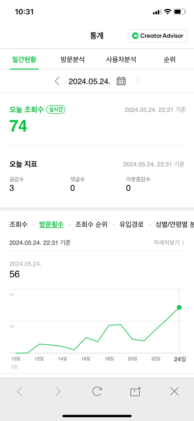 어떻게 해야 방문자를 늘릴 수 있을지 같이 고민하고, 이번처럼 예상치도 못한 통찰력을 나에게 주는 좋은 파트너가 생긴 것 같아 꾸준히 계속할 수 있을 것 같다.