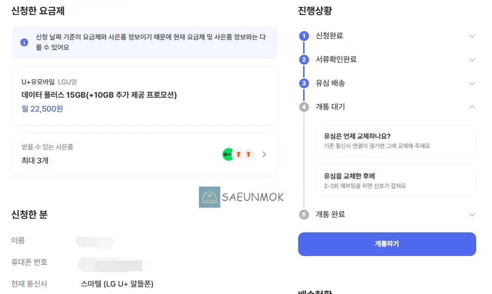 변경하는 통신사로 유심을 구입하고 개통 신청까지 했는데 거의 1주일 넘게 개통이 되지 않았어요.