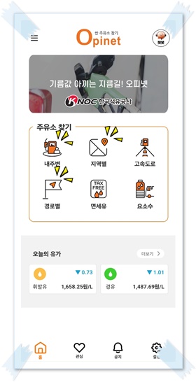 오피넷 어플도 이용 가능 하다.