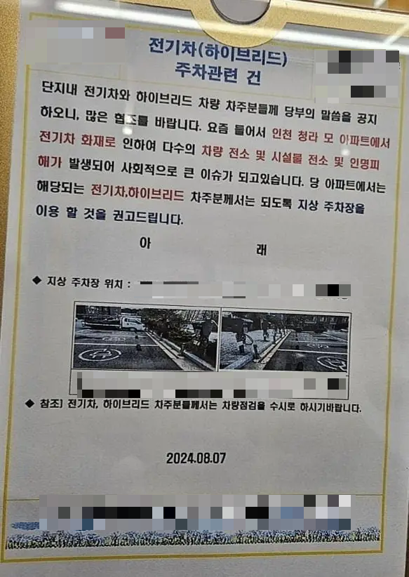 지난 8월 1일 인천 청라의 아파트에서 전기차가 발화되면서 엄청난 피해를 입힌 사고가 발생했습니다.아마 이 일을 계기로 전국의 많은 아파트에서 전기차주와 아닌 차주 사이에 갈등도 많아진