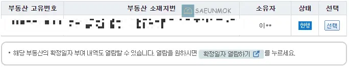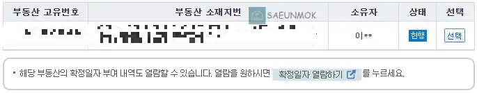 소재지 내 건물 소유주 이력 확인