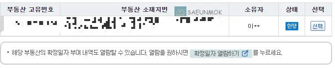 참고로 등기부등본을 확인할 때 700원의 비용이 드는데 이건 출력을 해야 드는 비용입니다.